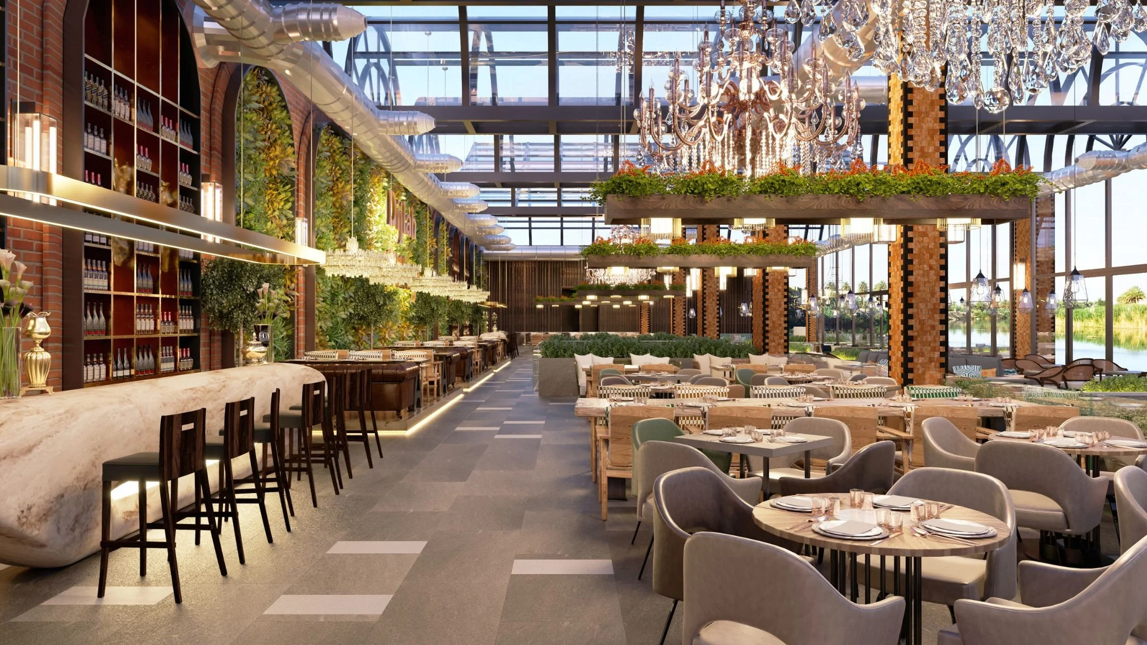 - A contemporary bar area with comfortable seating and personalized drink recommendations to create a chic social hotspot for guests.